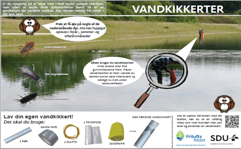 Videoen viser hvordan man med få materialer nemt og hurtigt kan lave sin egen vandkikkert. Kikkerten er super god til at udforske hvad der sker under vandoverfladen.