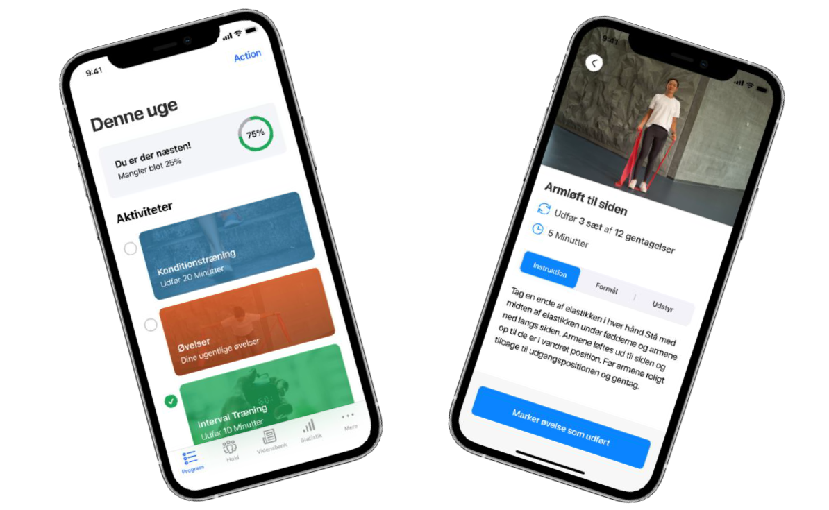 Ca. 30% af deltagerne fulgte regelmæssigt træningsprogrammet i appen, men nogle oplevede tekniske problemer og syntes, at appen var svær at integrere i deres daglige rutine.