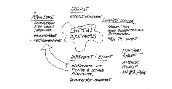 Ambitionen er at etablere fremtidens fleksible læringsmiljø, hvor vi udnytter de hybride potentialer i tid og rum, der kombinerer det digitale og fysiske og giver mulighed for fordybelse og erfaringsbaseret læring. Vi vil udvikle læringsrum, hvor de studerende med forskningens metoder udfordres af virksomhedernes problemstillinger. Både studerende og virksomheder eksperimenterer og lærer nyt. Målet er at skabe meningsfulde læringsrum, hvor vi kombinerer den fysiske og digitale læring med udgangspunkt i virksomhedernes problemstillinger.
