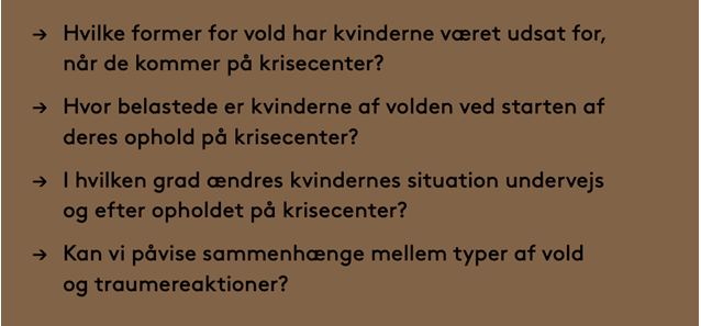I en ny rapport om kvinder på krisecenter undersøges forekomsten af fysisk, psykisk og seksualiseret vold blandt 150 kvinder på fire danske kvindekrisecentre, samt hvordan volden påvirker deres mentale helbred, og hvordan de udvikler sig undervejs i opholdet.