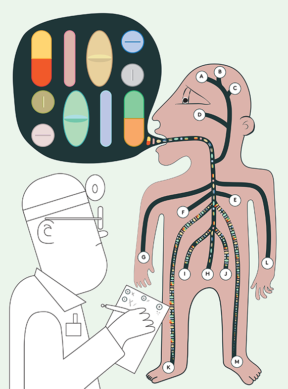 Man kan som eksempel forestille sig, at en sygdom er resultatet af en fejl i en signalvej i kroppen. Denne signalvej har flere forskellige involverede gener, hvor tingene kan gå galt og komme til udtryk i flere forskellige sygdomme.