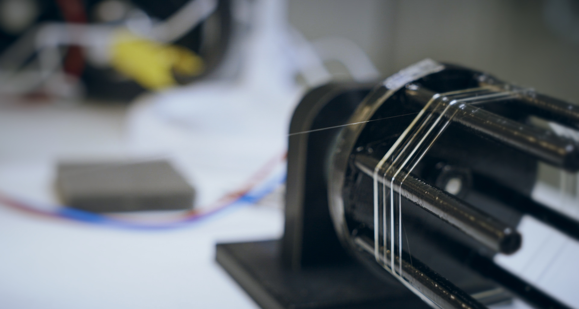 | Når edderkoppen spinder silketråd til forskerne i laboratoriet, bliver tråden vundet op på en spole. Foto: Anders Boe/SDU. |