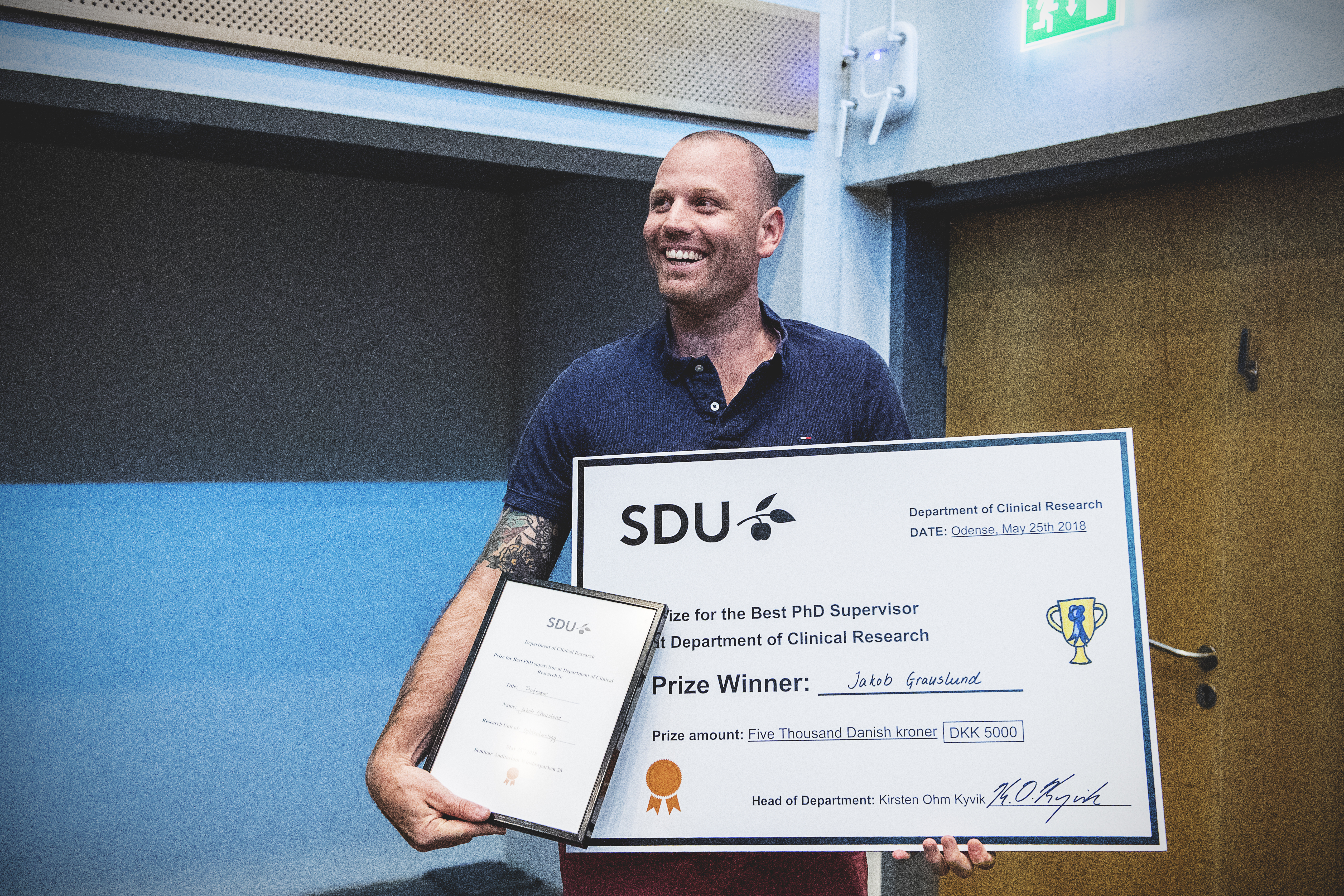 - Siden han overtog roret fra den foregående og meget afholdte professor, har han egenhændigt udviklet og styrket forskningsenheden, som nu er en af de mest forskningsaktive øjenafdelinger i Danmark. Da han overtog 5 ph.d. studerende, tilsidesatte han eget arbejde og ambitioner for at hjælpe disse succesfuldt i mål med deres forskningsprojekter. Derfor var glæden blandt os stor, da han efterfølgende blev ansat som ny professor ved Øjenafdelingen.