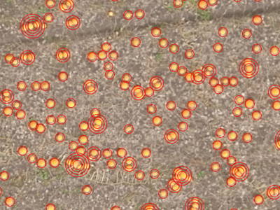 - Det tager computeren 10 minutter at tælle 100.000 græskar. Jeg beder computeren om at finde orange klatter på billedet. Dernæst ser jeg på omkredsen af de orange klatter. Hvis omkredsen er mere end 47 pixels, svarende til 110 cm, antager jeg, at der er to græskar i pletten, forklarer Henrik Skov Midtiby.