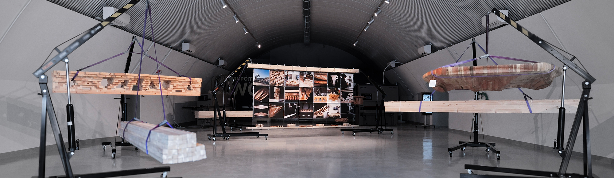 I udstillingen præsenterer SDU CREATE en række forskningsprojekter, hvor digitale værktøjer og robotteknologi bruges til at gentænke, hvordan træ bearbejdes og genanvendes. Her arbejder forskerne blandt andet med, hvordan træelementer kan sammensættes på nye måder, hvordan mindre og uensartede stykker træ kan indgå i bærende konstruktioner, og hvordan restmaterialer som savsmuld og træfibre kan bruges i nye kompositmaterialer.