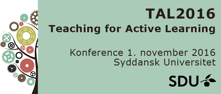 Velkommen til websiden for TAL2016. Konferencens hovedtema er aktiverende undervisning og aktiv læring, som er det bærende princip for uddannelse på SDU. Denne konference skal hjælpe praktikere med at inspirere hinanden og formidle viden og erfaringer om, hvordan studerendes læring fremmes i overensstemmelse med de bærende principper på SDU.