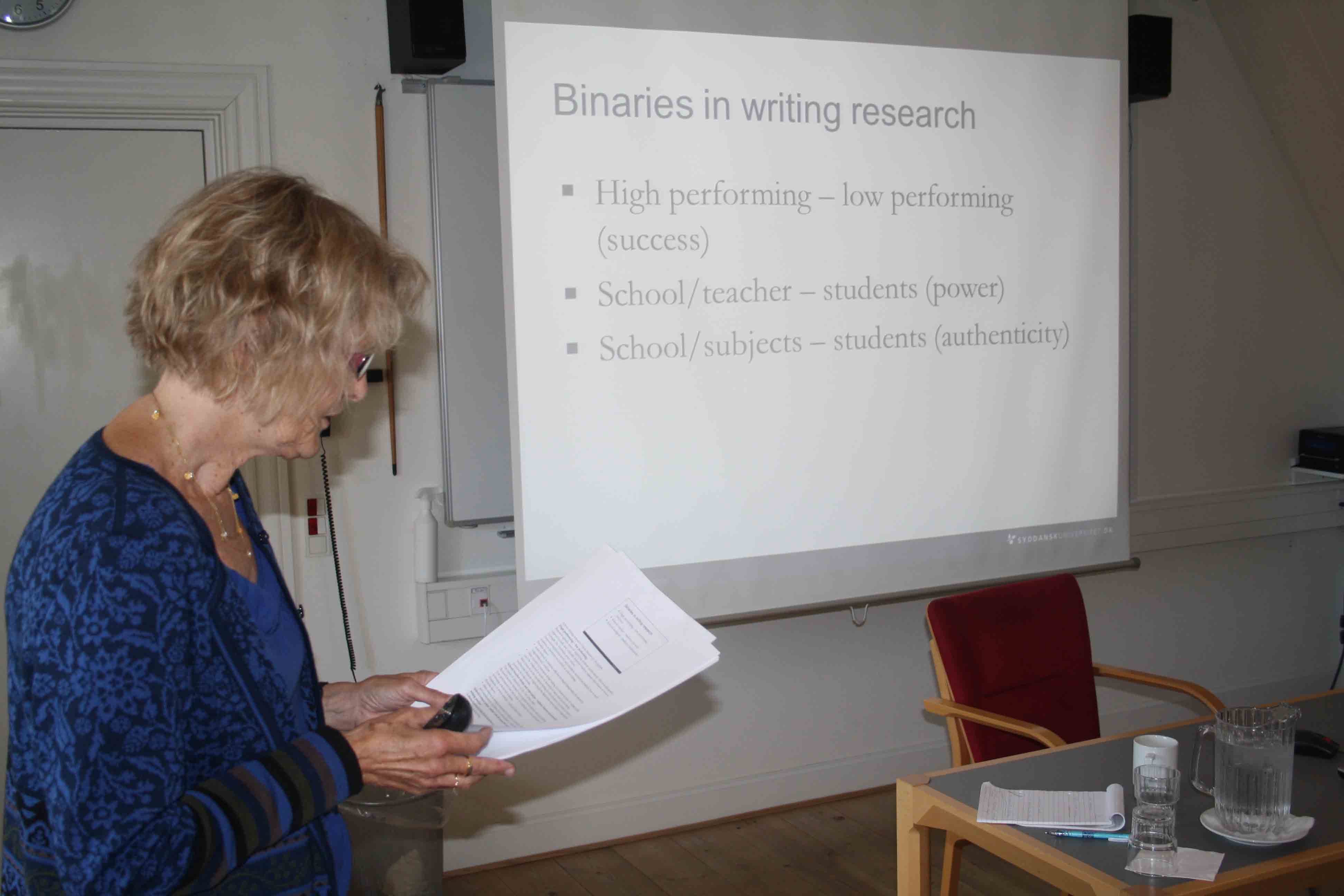 Ellen Krogh præsenterer paper på møde med international ressourcegruppe på Haraldskær, 2013. |