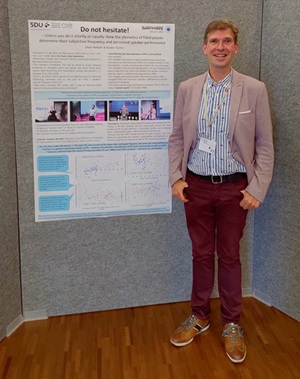 Oliver Niebuhr holder oplæg på Interspeech-konferencen (INTERSPEECH 2019) i Graz, Østrig. Han præsenterer fælles arbejde med Kerstin Fischer om tøvepartikler (fx øh) og hvornår de bliver forstyrrende eller irriterende. Se posteren her (på engelsk)
