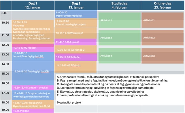 Formålet med det tværfaglige forLØB er, at I sammen skal designe et tværfagligt projektforløb til gymnasieelever af 1 – 3 dages varighed. I projektforløbet skal I inddrage ét eller flere af jeres fag, og fagene skal indgå i et tydeligt tværfagligt samspil med de øvrige involverede fag.