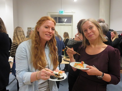 Efterfølgende var der reception, hvor centeret bød på champagne, sushi og flødebobler.