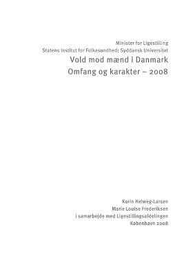 Rapporten beskriver ud fra befolkningsundersøgelser og registerdata det aktuelle omfang og karakteren af vold mod mænd i Danmark og sammenligner volden med den vold mænd udøver mod kvinder i Danmark. Der fokuseres på kønsforskellene i udsættelse for partnervold og beskrives sammenhænge mellem en række aldersmæssige og sociale faktorer og risikoen for voldsudsættelse.