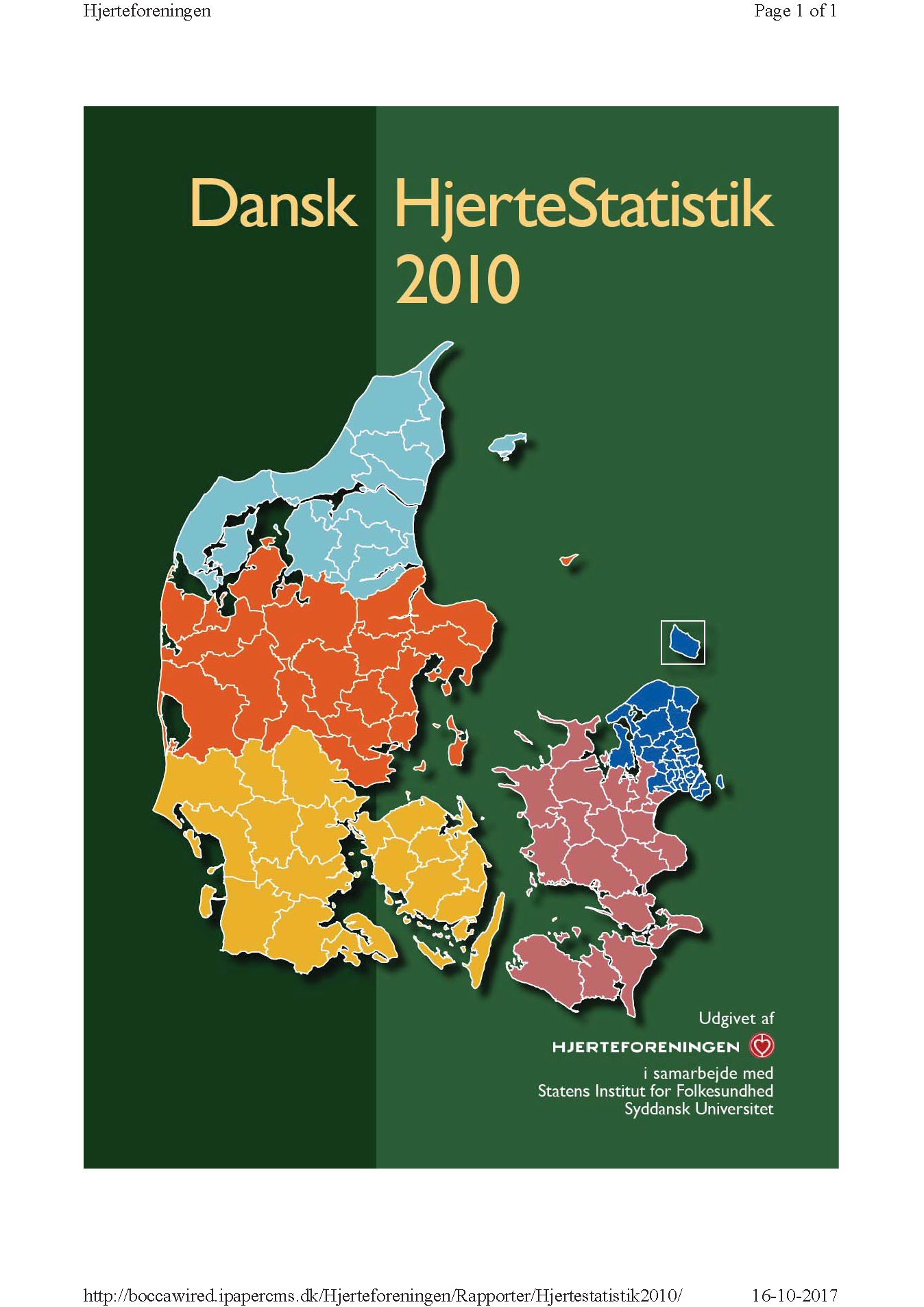 Hjerteforeningen og Statens Institut for Folkesundhed ved Syddansk Universitet har sammen udarbejdet Dansk Hjertestatistik 2010, der giver et samlet overblik over hjertekarområdet på landsplan og i de enkelte regioner og kommuner. Udover grunddata om befolkningen bl.a. aldersfordeling, uddannelse og etnicitet indeholder rapporten oplysninger om dødelighed, indlæggelser, medicinforbrug og omkostninger ved hjertekarsygdom i alle kommuner, regioner og på landsplan.