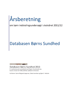 Denne årsberetning fra Databasen Børns Sundhed er baseret på sundhedsplejerskers journaldata om 5.506 børn, der har gennemgået indskolingsundersøgelen i skoleåret 2011/12. Børnene er fordelt på elleve kommuner: Albertslund, Ballerup, Brøndby, Dragør, Gentofte, Glostrup, Herlev, Høje-Taastrup, Køge, Rødovre og Tårnby. Årsberetningen rapporterer resultater for den samlede population og for hver enkelt kommune.