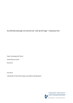 Notatet beskriver sundhedskonsekvenser ved potentielle prisændringer (fald og stigninger), på hele den danske befolkning samt for en kohorte af børn og unge. Beregningerne vil tage udgangspunkt i fem forskellige scenarier af prisændringer og konsekvenserne vil blive opgjort som ændringer i antallet af rygere, og antal sygdomstilfælde og dødsfald. Der vil være fokus på iskæmisk hjertesygdom, karsygdomme i hjernen, lungekræft og kronisk obstruktiv lungesygdom (KOL).
