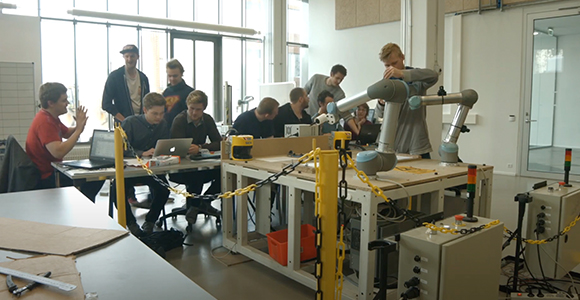 Du bliver en del af et dynamisk læringsmiljø, som er baseret på projektarbejde, cases og studer. Du lærer om teamwork og samarbejde, så du bliver forberedt til den arbejdsform, du møder i dit kommende arbejdsliv som robotingeniør. Du og dine medstuderende har selv ansvaret for at planlægge og gennemføre projektet – til rette tid. Projektoplæggene kommer som regel fra virksomheder, og vi lægger vægt på, at du løser problemstillinger fra det virkelige liv.