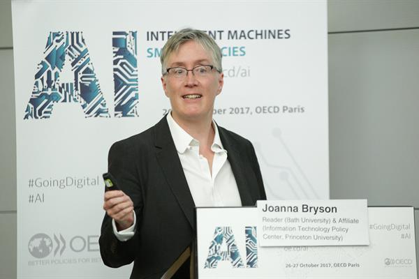 Her work has appeared in venues ranging from reddit to the journal Science. From 2002-2019 she was Computer Science faculty at the University of Bath; she has also been affiliated with Harvard Psychology, Oxford Anthropology, The Mannheim Centre for Social Science Research, The Konrad Lorenz Institute for Evolution and Cognition Research, and the Princeton Center for Information Technology Policy. Bryson first observed the confusion generated by anthropomorphised AI during her PhD, leading to her first AI ethics publication “Just Another Artifact” in 1998. She is now a leader in AI ethics, having since coauthored the first national-level AI ethics policy, the UK’s (2011) Principles of Robotics, and contributed to efforts by the OECD, EU, UN, OSCE, Red Cross and Google among others. In June 2020, she was one of nine experts nominated by Germany to the founding cohort of experts for the Global Partnership for AI.