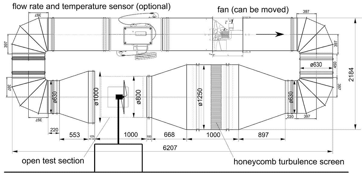Inspired by the Danish wind turbine pioneer Poul La Cour's open wind tunnel located at Askov Højskole (picture to the right), which he used in his research and teaching of the founders of the Danish wind turbine adventure, we will build a modern version (see the sketch below) for teaching at Centre for Industrial Mechanics at SDU Sønderborg.