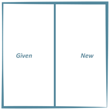 Given that composition is discussed here in regard to semiotic modes, the information value as a component of semiotic space is described according to the arrangement of the elements and through further interpretation of the text. The distinction between left and right is perceived as a source of meaning, and it indicates the relevance of information for the audience in particular contexts. Throughout different texts and contexts, left is often associated with the ‘general’, ‘past’, ‘recoverable’ and subsequently ‘Given’, while right is associated with the ‘specific’, ‘present’, ‘not recoverable’ and therefore ‘New’ (van Leeuwen 2005; Halliday 1985).