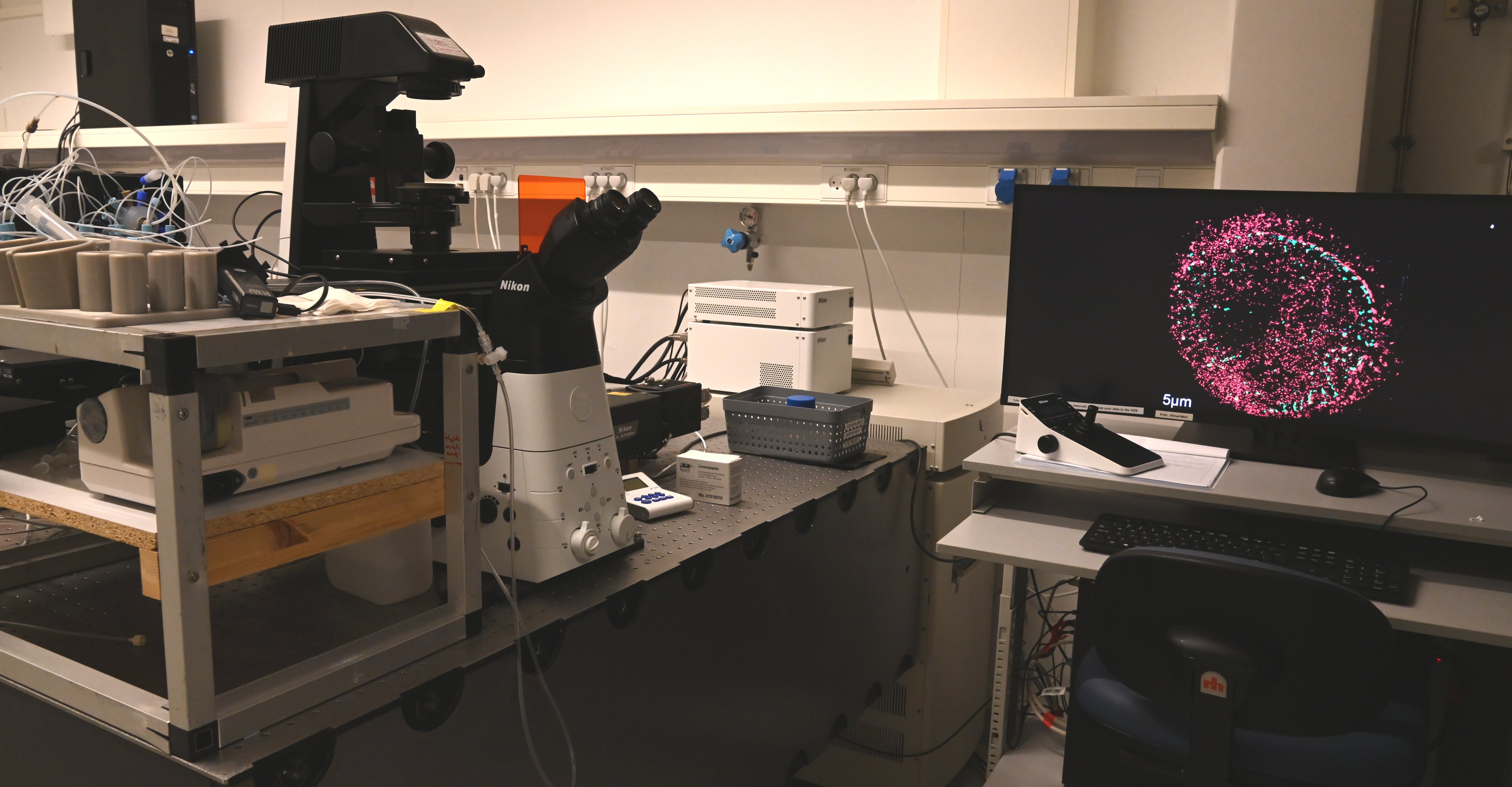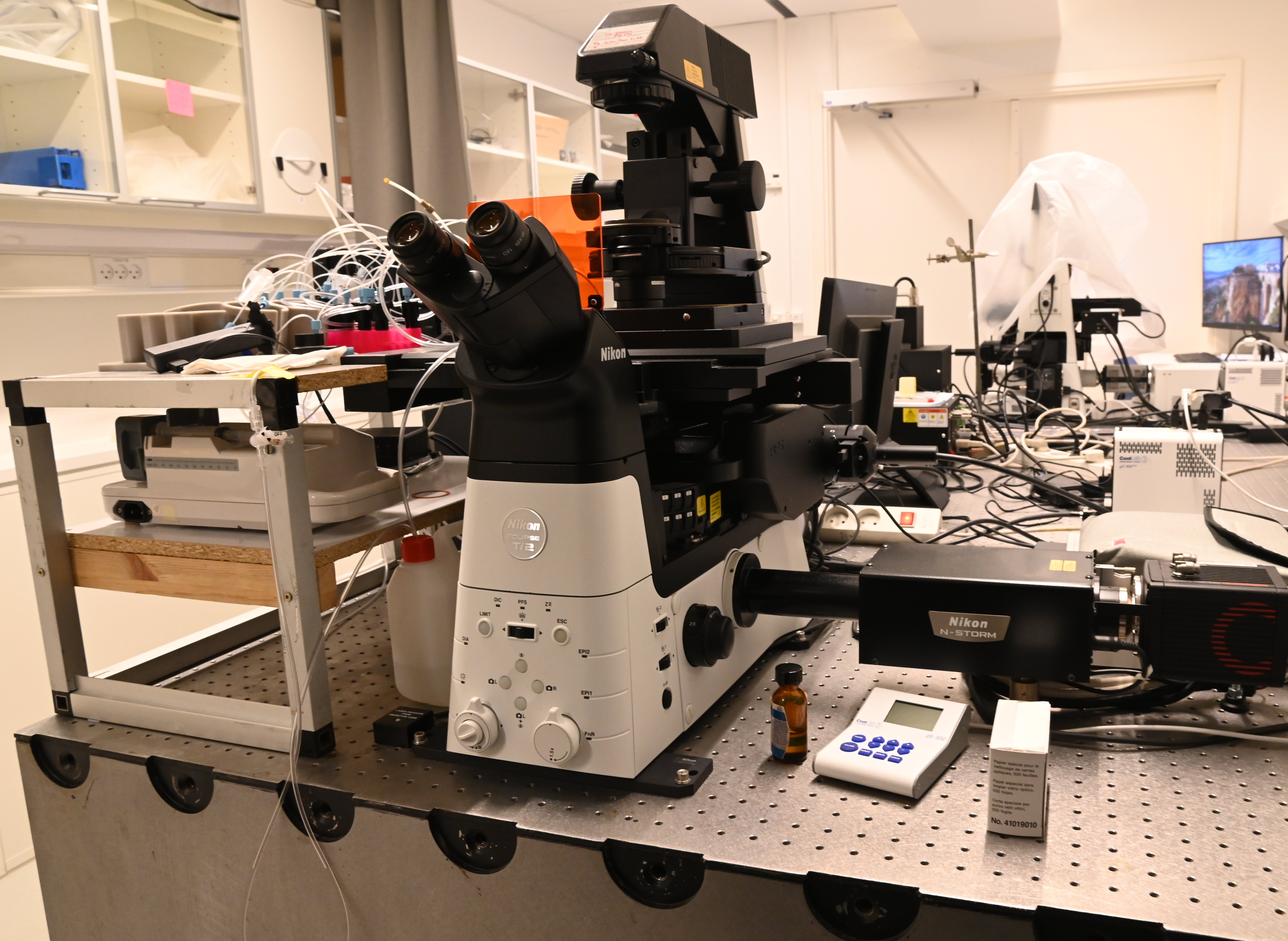 Nikon Ti-2 with N-STORM optics, software-controlled TIRF illumination and Perfect Focus System (PFS).