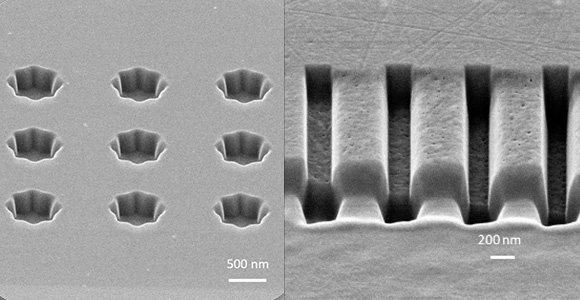 - We use electron and focused ion beam lithography to fabricate individual nanostructures of well-defined geometry, such as nanophotonic waveguides, nanoantenna arrays or templates for particle assembly.
