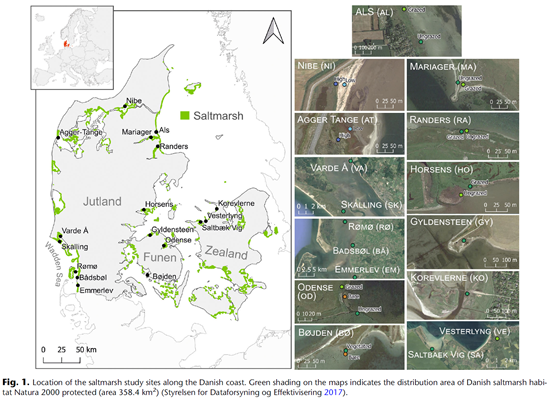 and accumulation rates in 17 saltmarshes distributed along the Danish coasts and investigated the main drivers of soil