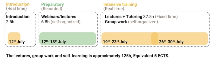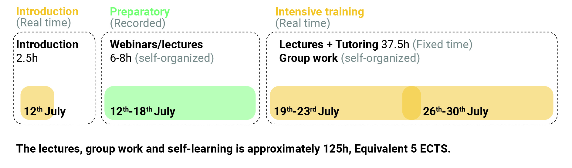 From the 19th until 30th July, there will be live sessions each day lasting 2.5 hours (13.00 – 15.30 CEST time), during which there will be lectures, presentations of the challenge, feedback on the group work and common group discussion. The daily session time is indicative and will be adjusted depending on participants’ time zone. In addition, participants will be working on the problem-based challenge in small groups, and coaching sessions will be organized with each group.