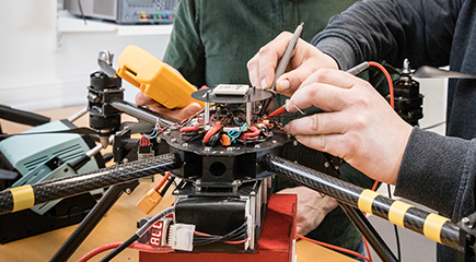 A multidisciplinary and flexible research and workshop environment within Electronics, Mechanics and Software/Simulation for test and integration of drone systems.