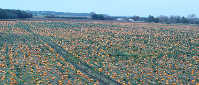 Landowner, Frants Bernstorff-Gyldensteen, grows pumpkins on 80 hectares of land, giving approximately 400,000 pumpkins.