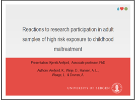 Ph.D.-students from the National Centre for Psychotraumatology attended numerous presentations and have selected some of those that were particularly interesting. As a guest on our website, you have the possibility of exploring these presentations, either through power point-files or through beta versions of the articles. You can access these by clicking the pictures below.