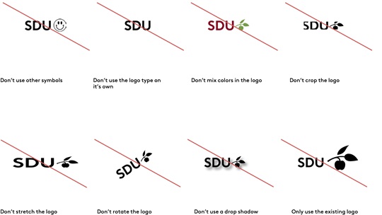 The apple branch or other parts of SDU’s logo may not be used in your own logos.