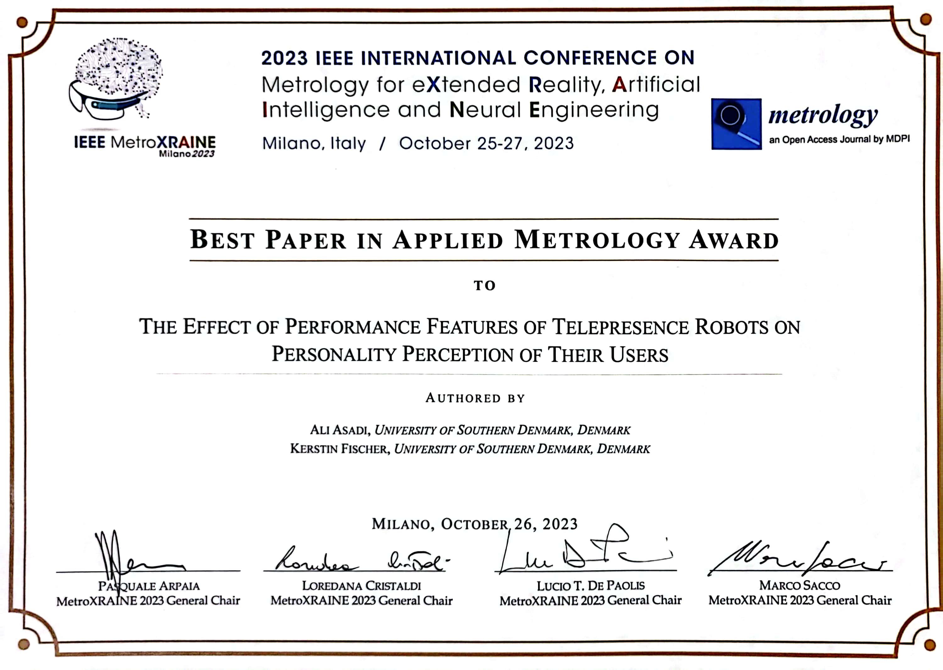 This research has received the best paper award at the IEEE MetroXRAINE 2023 conference, which is a prestigious event that showcases the latest developments and innovations in mixed reality and artificial intelligence.