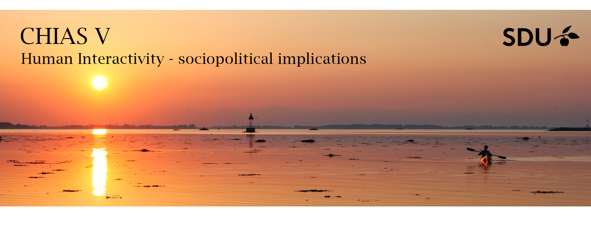 In 2017 we are proud to host the fifth annual Centre for Human Interactivity Autumn Symposium (CHIAS V). The symposium will take place on the 25th of September 2017 at University of Southern Denmark on the Odense campus.