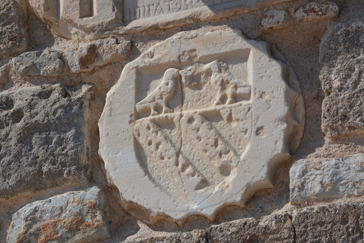 Fig. 6. Ionic column capital in the east wall of the Italian tower with shield of Fr. Angelino Muscetulla (P. Pedersen).