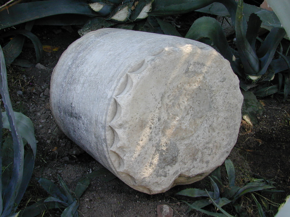 Fig. 7. Bottom side of unfinished Doric column drum in east wall of the Italian Tower (P. Pedersen).