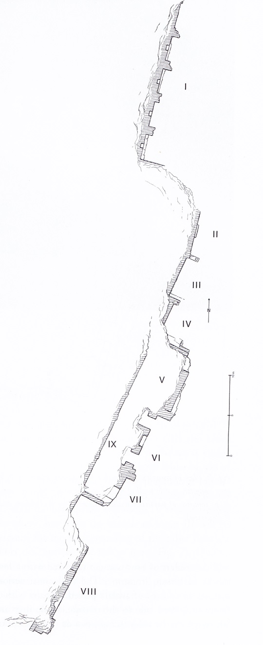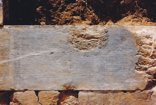 and the inscription sits in the back wall of room III in the central part of the building, part B: