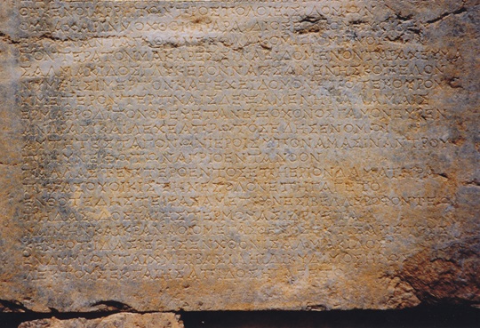 Both the nymph Salmakis and her fountain were known to us not only from Strabo but first and foremost from his contemporaries, Ovid (Metamorphoses 4.285-388) and Vitruvius (On Architecture 2.7.11-12). Vitruvius even gave an idea of the location of the fountain. But it was not until 1995 that Vitruvius’ indications by chance were confirmed, when the Turkish authorities discovered a sixty lines long, partially damaged but mainly well preserved, inscription cut into an ancient wall still in situ at the promontory Kaplán Kalessí, also called Salmakis.