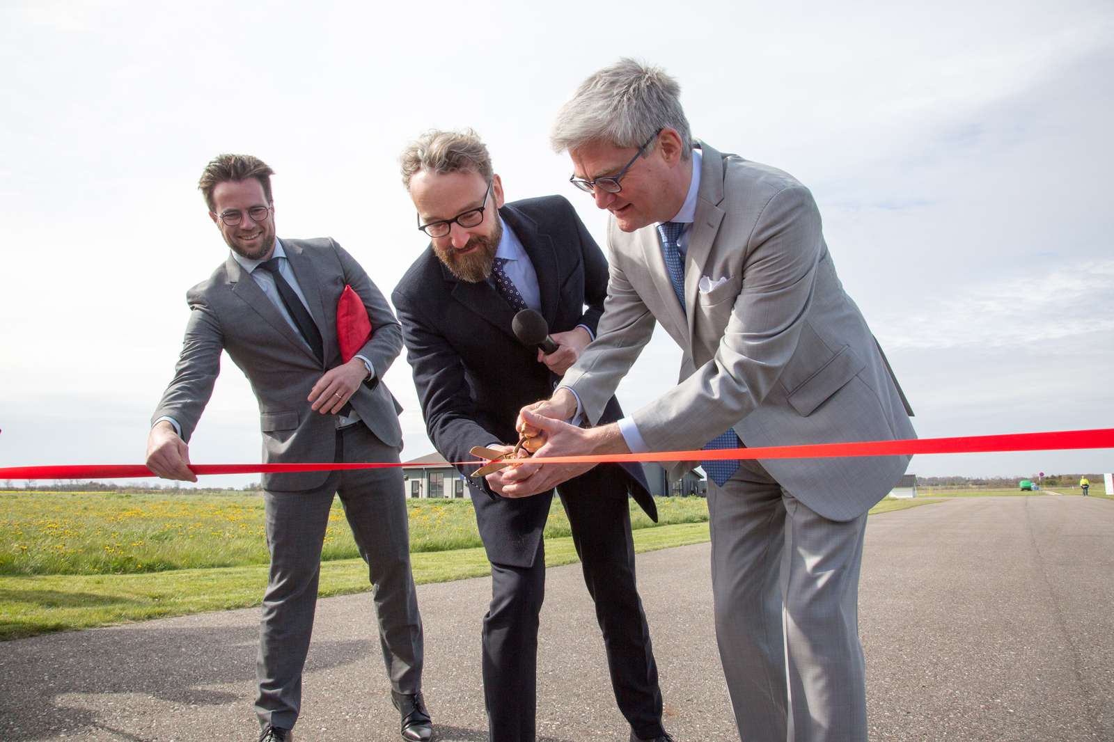 This happens, when Minister of Transportation Benny Engelbrecht launces the first tests at HCA Airport near Odense.