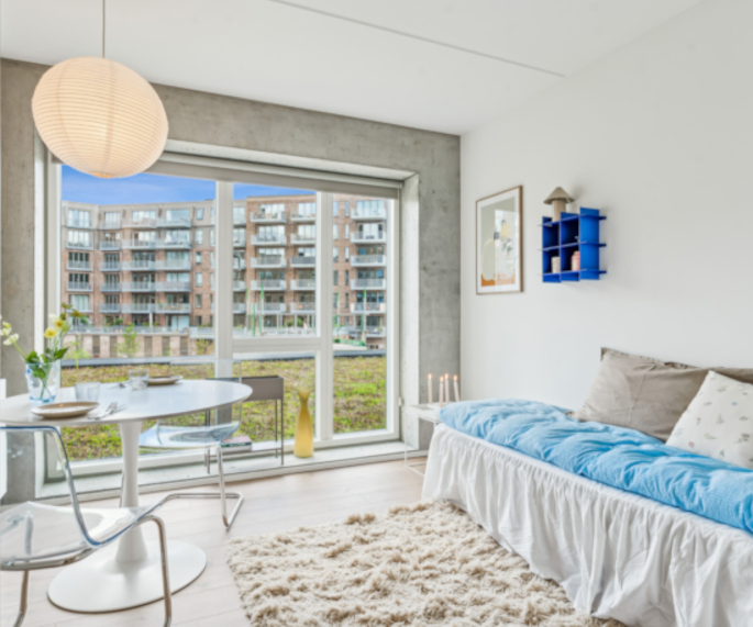 At TERMINALEN in Vejle, you will have your own modern studio apartment with private kitchenette and bathroom while being part of an active and social community. TERMINALEN offers a unique housing concept where private living is combined with shared facilities and social activities.
